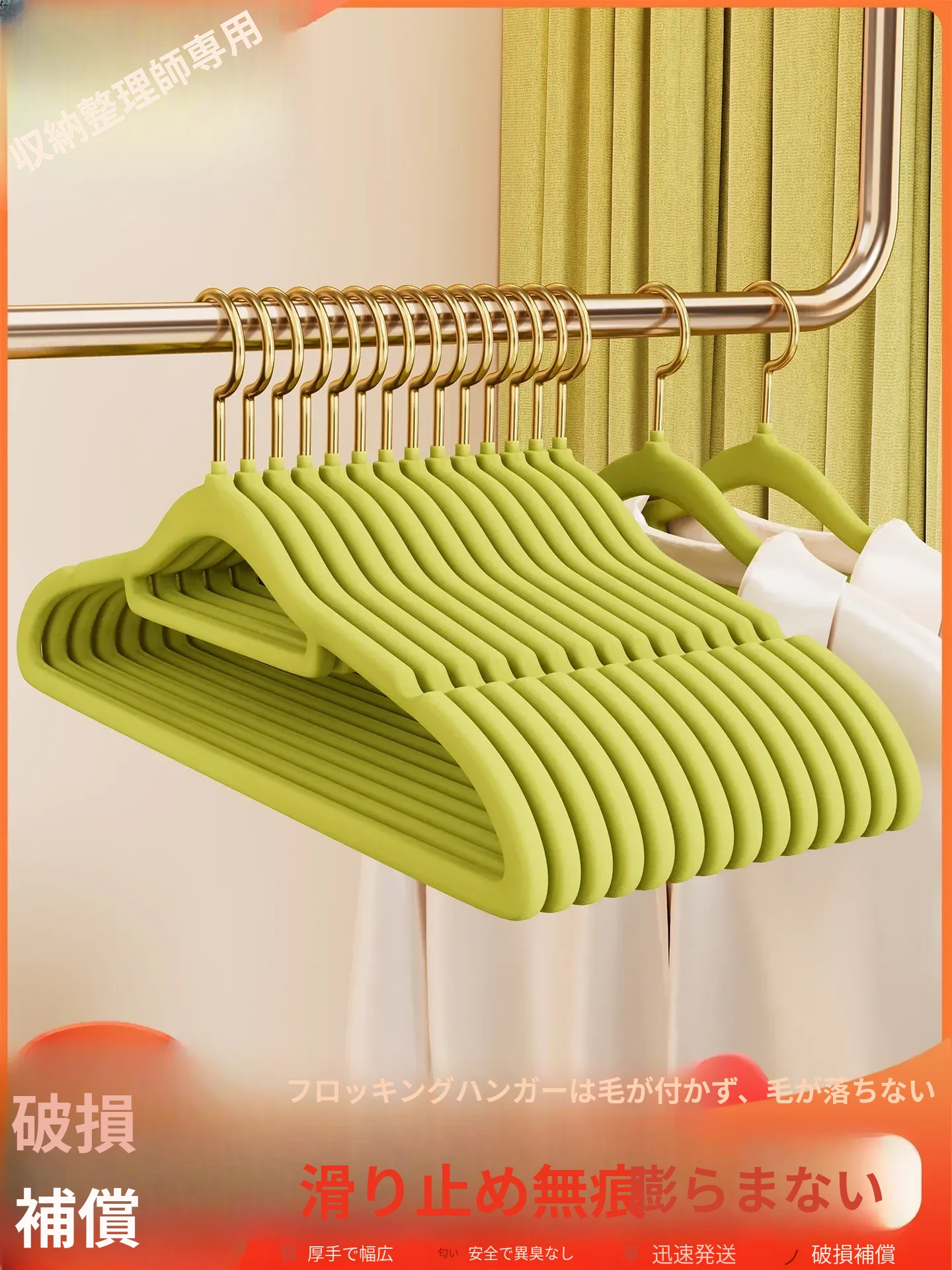 短い首のフロッキー衣類ハンガー - 家庭用クローゼットに最適!滑り止め機能付きで、衣類をしっかりと整理。プロの整理師にもおすすめの無痕ハンガーです。おしゃれな衣服の収納に最適!