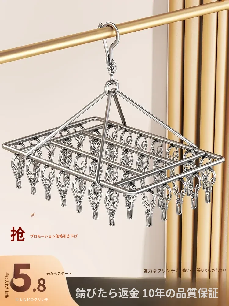 ステンレス製靴下干し神器!多機能衣類干しラック - 風に強いクリップ付き、家庭用バルコニーに最適な衣類掛けで、洗濯物をしっかりサポートします!