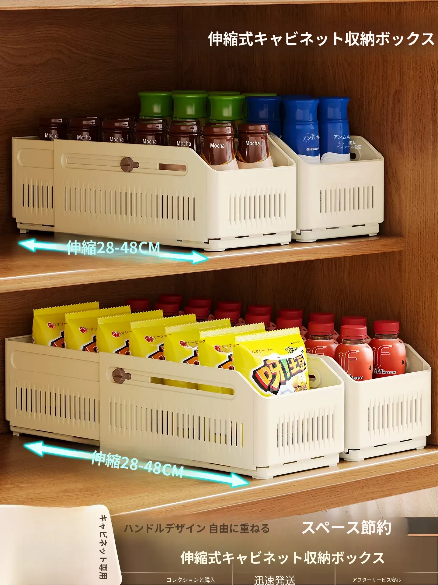 引き出し式伸縮デザインのキッチン収納ボックス!デスク上のお菓子や小物整理に最適な深型コーナー収納ボックス。おしゃれで便利、キッチンやリビングをスッキリ整頓!