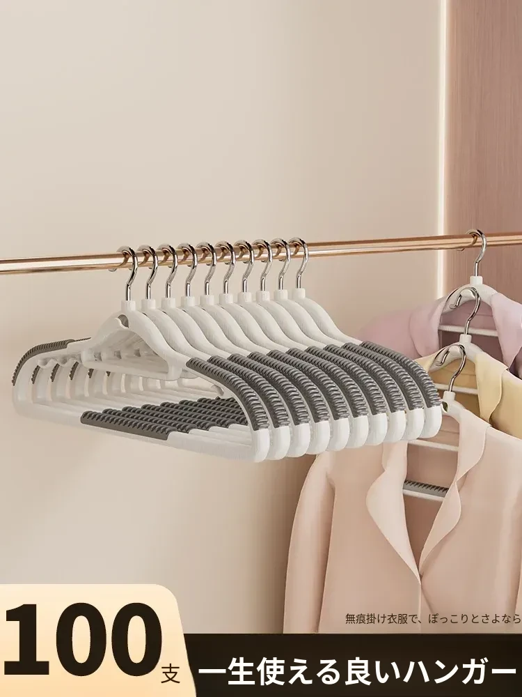 滑り止め付き衣類ハンガー100個セット - 家庭用、学生寮にも最適!無痕で大切な衣服を守り、しっかりとした干し方を実現。衣類をしっかり支えて、クローゼットをすっきり整理!