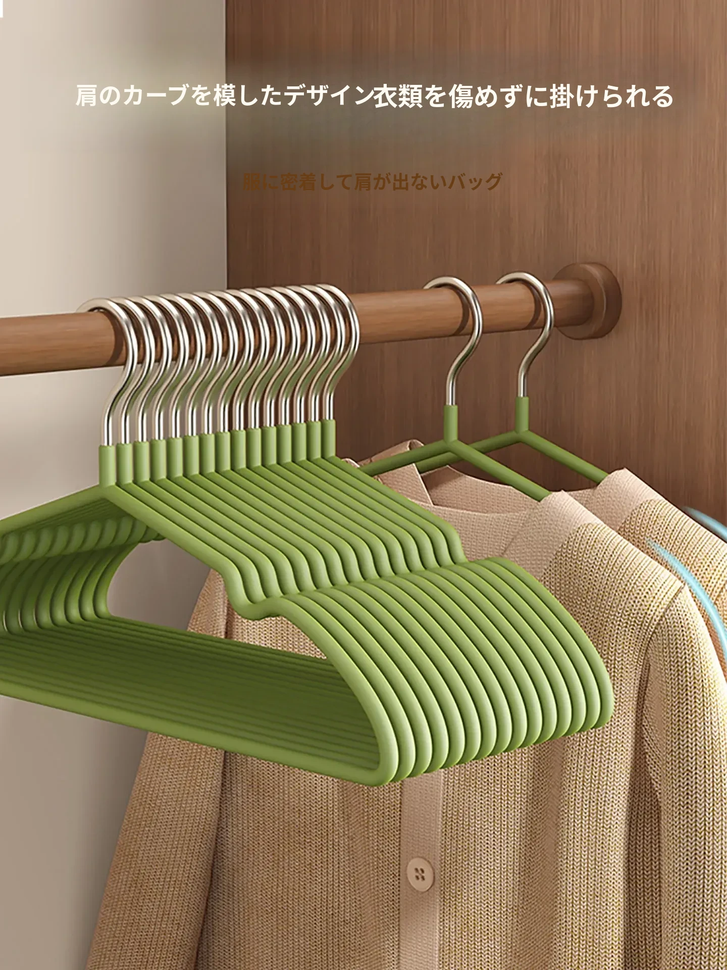滑り止め機能付き衣類ハンガー - 肩のラインを守り、衣服を美しく保つ!家庭用に最適な無痕収納ハンガーで、クローゼットをスッキリ整理。衣類をしっかり支えて、シワを防ぎます!