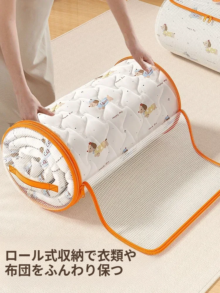 大容量丸型収納袋 - 衣類や布団をすっきり整理!引越しや収納に最適、防湿・防カビで安心!