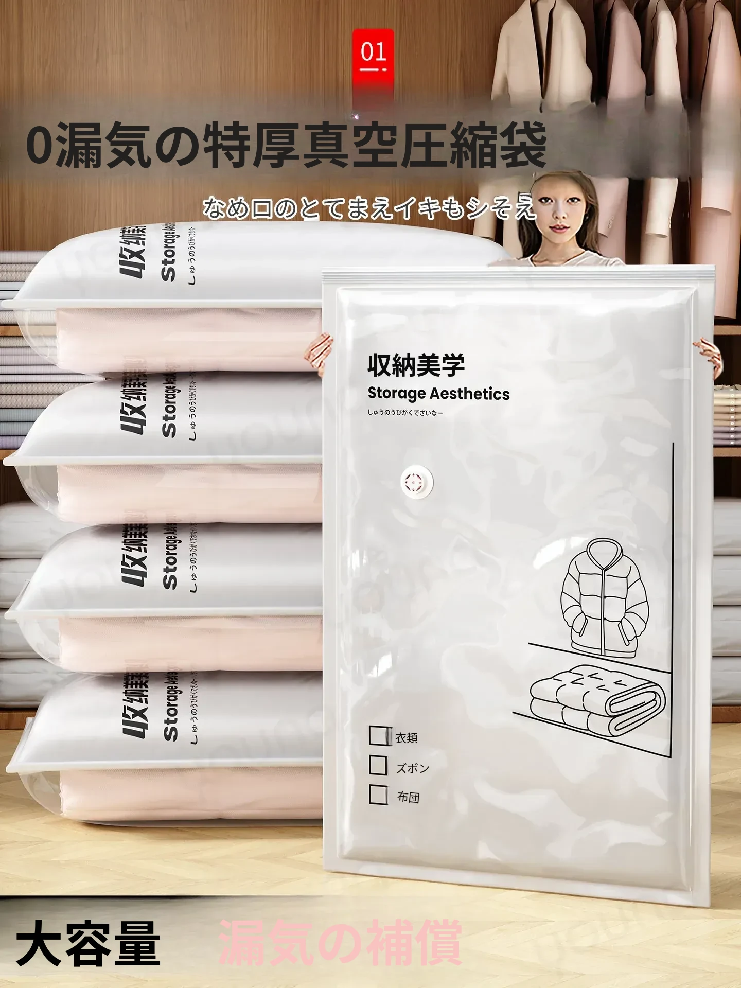 大容量真空圧縮収納袋 - 敷き布団や衣類、ダウンジャケットもスッキリ整理!引っ越しや収納に最適な便利アイテム!