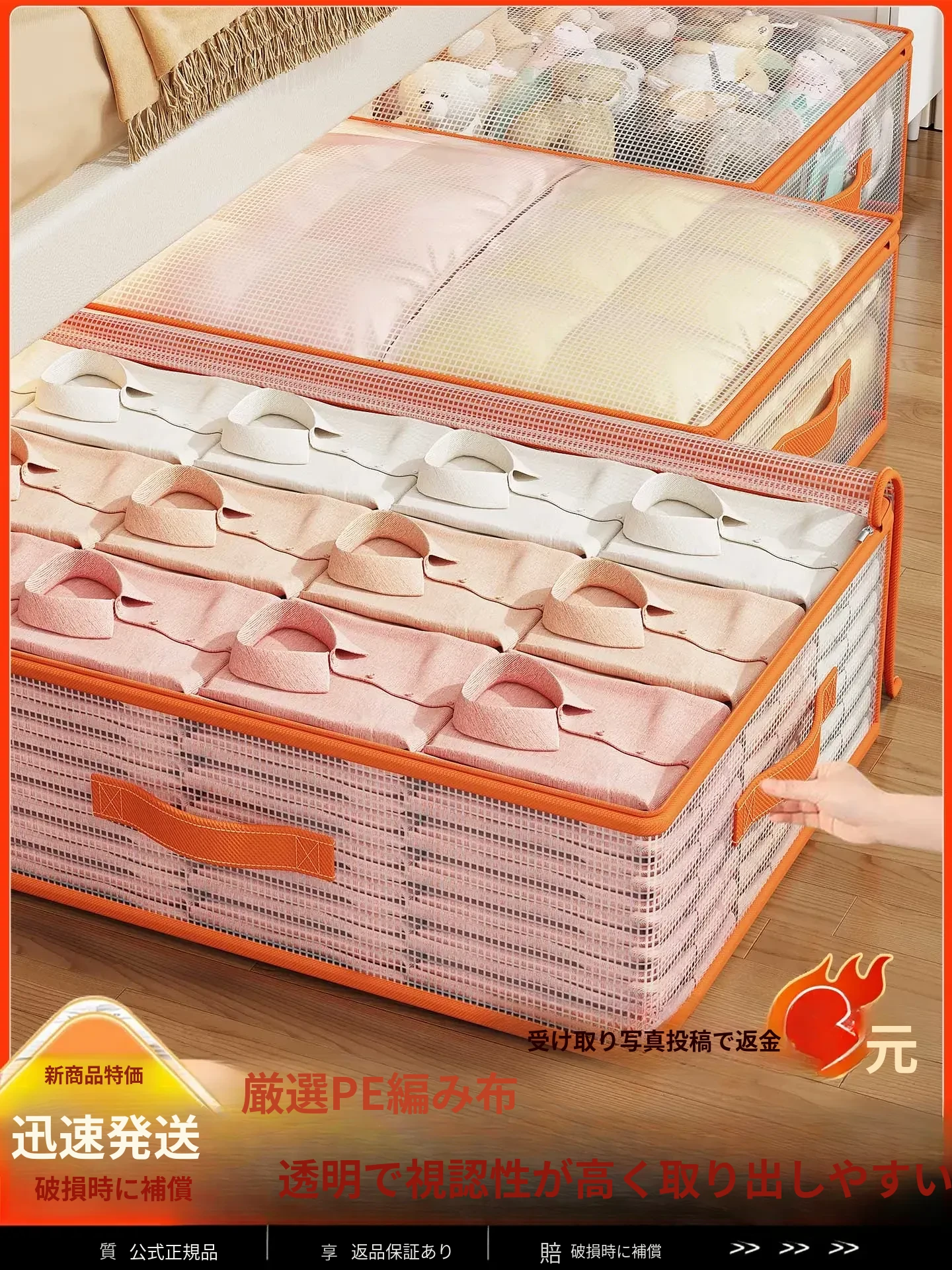 布団や衣類をすっきり整理!透明の引き出し式収納ボックス - ベッド下にぴったりな便利な収納アイテム!
