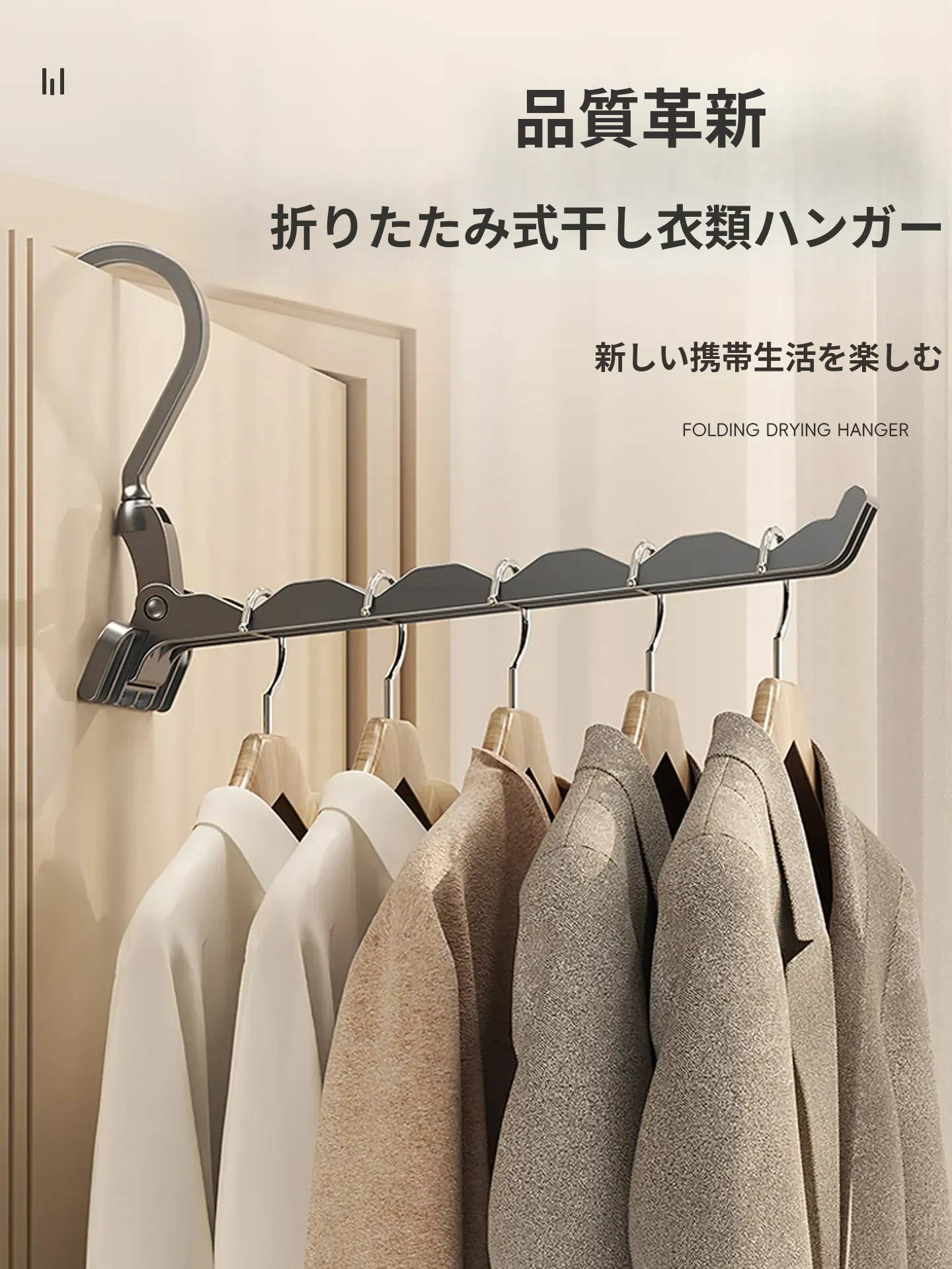 旅行用折りたたみハンガー - コンパクトで便利!出張や旅行、学生寮やホテルでの使用に最適な多機能干しアイテム。衣類をしっかり乾かし、スペースを節約!