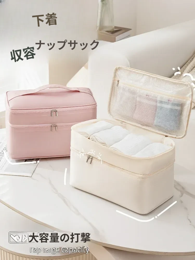 旅行に最適!防水ダブルレイヤーの下着整理ポーチ - コンパクトで便利なブラとパンティの収納バッグ、旅行中の衣類整理を簡単に!