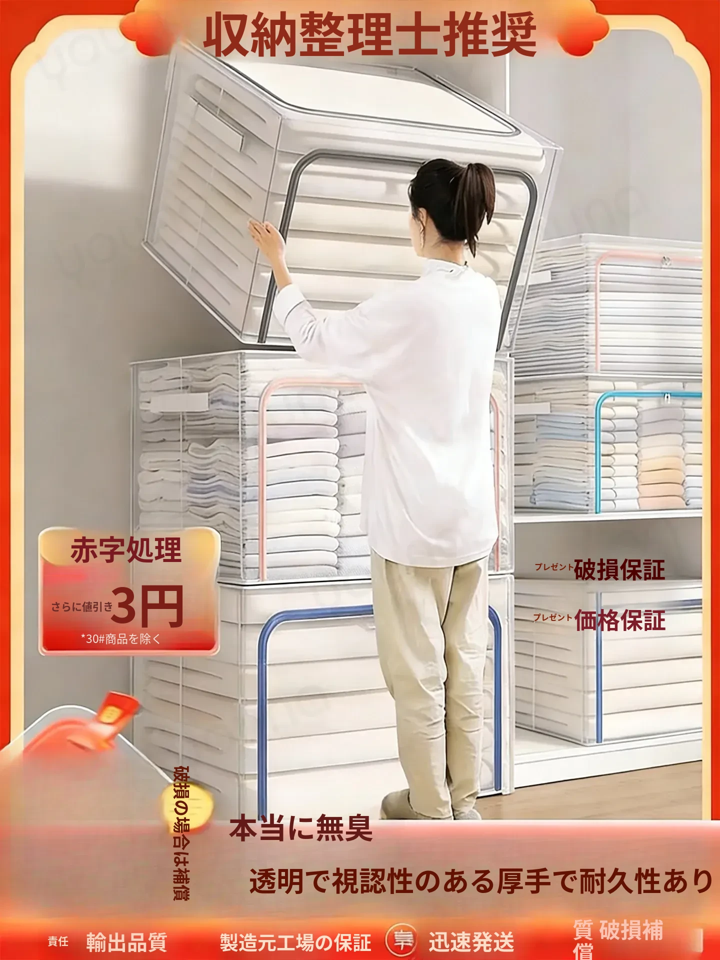 大容量折りたたみ衣類収納ボックス - 家庭用衣類整理・布団収納・引っ越しにも最適!スッキリとしたクローゼットを実現!