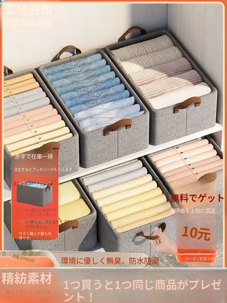 天山コットンリネン衣類収納ボックス - 家庭用折りたたみ式衣類整理箱、クローゼットをスッキリ整理!多層収納でスペースを有効活用、オシャレで実用的な収納アイテム!