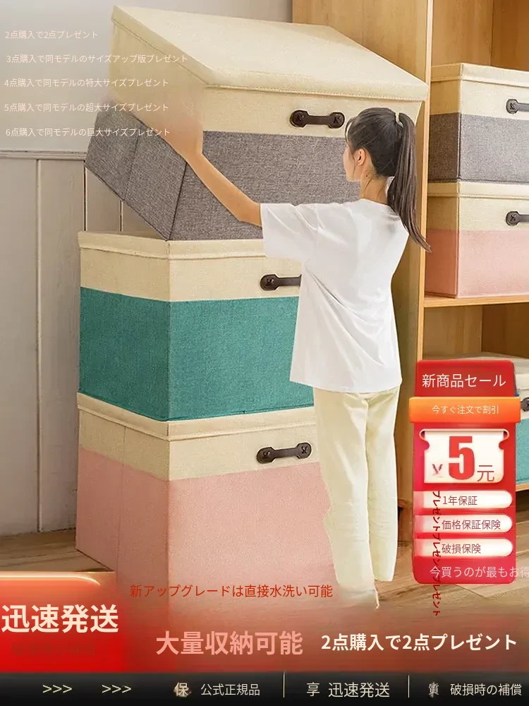 収納力抜群!棉麻素材の衣服収納ボックス - 家庭用クローゼットに最適!衣類や布団もスッキリ整理できる折りたたみ式ストレージバスケット。おしゃれで機能的なアイテム!